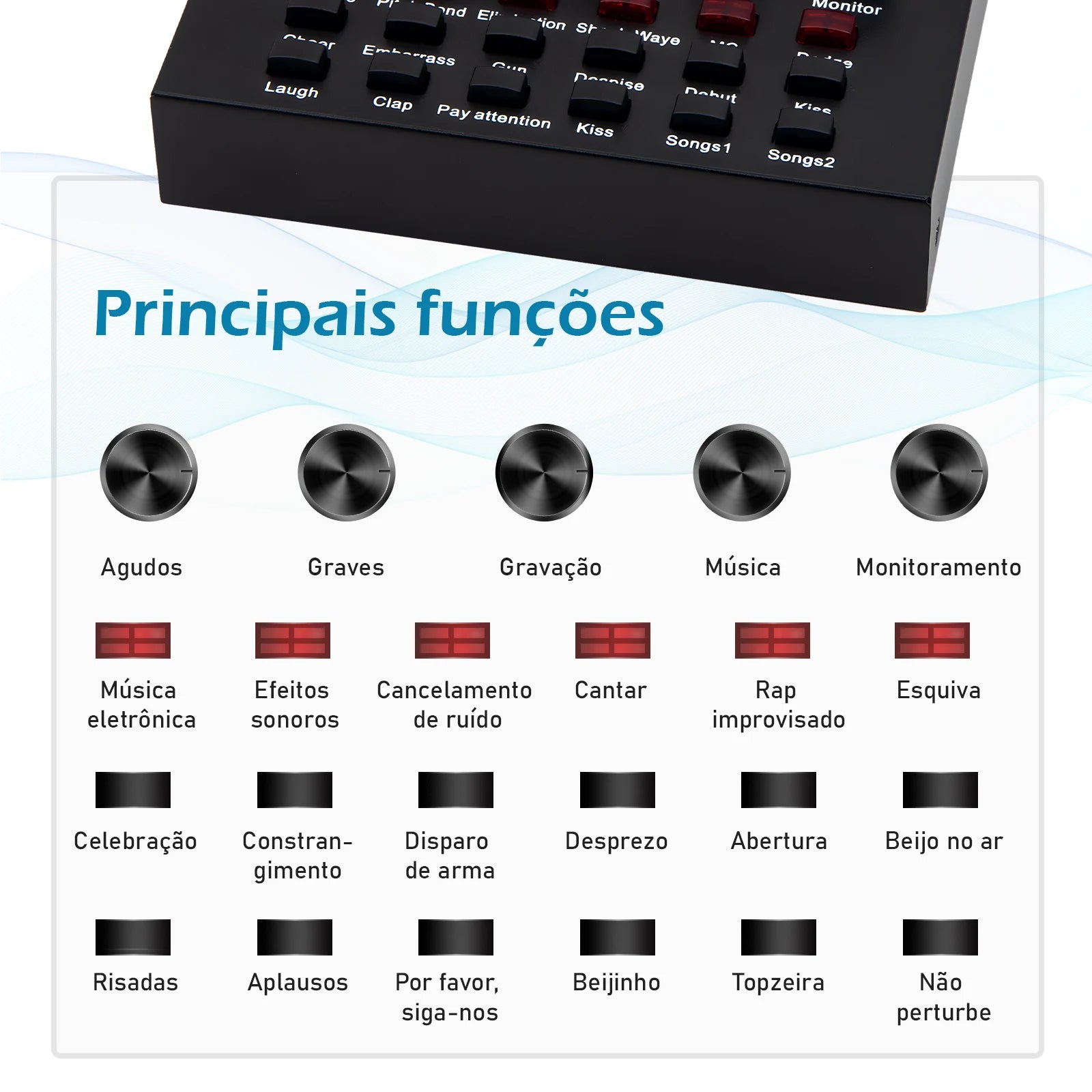 ✔️ Placa de som externa com efeitos de voz e controle de volume